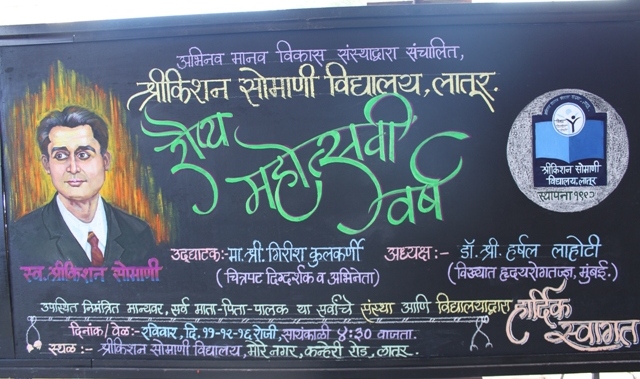 ११ डिसेंबर २०१६ रोजी संस्थेच्या रौप्य महोत्सवी वर्षाचे उद्घाटन मान्यवर अतिथींच्या उपस्थितीत हर्षोल्हासात संपन्न झाले. या समारंभास उद्घाटक म्हणून लातूरचे भूमिपुत्र सुप्रसिद्ध चित्रपट अभिनेते व दिग्दर्शक गिरीश कुलकर्णी, तर प्रमुख पाहुणे म्हणून श्रीकिशन सोमाणी यांचे नातू, महाराष्ट्रातील ख्यातकीर्त हृदयरोगतज्ज्ञ डॉ. हर्षल लाहोटी हे उपस्थित होते. या समारंभाच्या निमित्ताने संस्थाध्यक्ष डॉ. चेतन सारडा, संस्थाउपाध्यक्ष तेजमल बोरा व प्रकाश कासट, संस्थापूर्वाध्यक्ष रमेश राठी व शांतिलाल कुचेरिया, प्राचार्य कन्हैय्यालाल पुरोहित, संस्थासचिव कमलकिशोर अग्रवाल, सहसचिव सुभाष कासले, कोषाध्यक्ष जयेश बजाज, शालेय समितीचे अध्यक्ष डॉ. मधुकर कुलकर्णी, संस्थासदस्य व रौप्य महोत्सवाचे संयोजक अतुल देऊळगावकर, संस्थेचे भूतपूर्व संचालक मंडळ आणि प्रशाला प्रमुख सुभाष मिश्रा, विद्यालयातील शिक्षक-शिक्षिका, पालक, निमंत्रित, नागरिक, पत्रकार व विद्यालयाचे विद्यार्थी मोठ्या संख्येने उपस्थित होते. या समारंभास डॉ. हर्षल लाहोटी यांचे माता-पिता व विद्यालयाची पहिली विद्यार्थिनी श्रद्धा भोसले यांची विशेष उपस्थिती होती. या समारंभात विद्यालयातील सर्व शिक्षक व शिक्षकेतर कर्मचा-यांना ब्लेझरची स्नेहपूर्वक भेट देण्यात आली. सांस्कृतिक कार्यक्रमाचा भाग म्हणून कु. आकांक्षा तडोळे हिने वैयक्तिक, तर इतर विद्यार्थिनिंनी समूहनृत्य सादर केले.