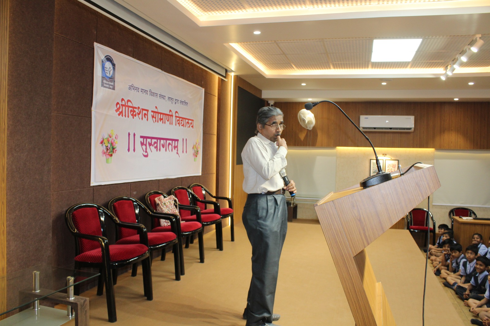 बालरंगभूमी परिषदेचे अध्यक्ष श्री.प्रकाश पारखी यांनी इयत्ता तिसरी व चौथीच्या विद्यार्थ्यांशी संवाद साधला. त्यांनी विद्यार्थ्यांना एकपात्री प्रयोग, नाट्यछटा, स्वगत, कथाकथन यातील फरक प्रात्यक्षिकातून खूप छान समजावून सांगितला. त्यांनी सादर केलेल्या कृतीगीताने व 'जादूचे घर' ही गोष्ट सांगताना काढलेल्या वेगवेगळ्या आवाजाने विद्यार्थी भारावून गेले. याप्रसंगी लातूर येथील प्रसिद्ध नाट्य कलाकार अमोल गोवंडे उपस्थित होते.